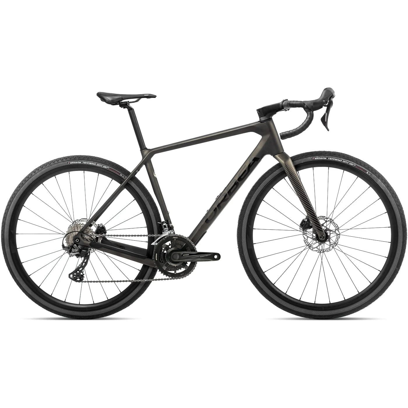 Frame: Orbea Terra carbon OMR Disc, monocoque constructie, HS 1,5″, PF30, powermeter compatible, steekas 12mm x 142mm achter, schroefdraad M12x2 P1, interne kabelgeleiding, EC/DC compatible